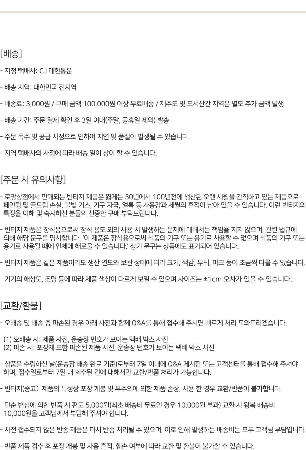 단순 변심에 의한 교환/환불이 불가합니다.